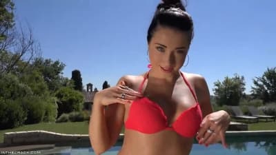 La miss se trémousse au bord de sa piscine avant de passer aux choses sérieuses. Une séance de masturbation que la belle n’imagine pas sans fist !