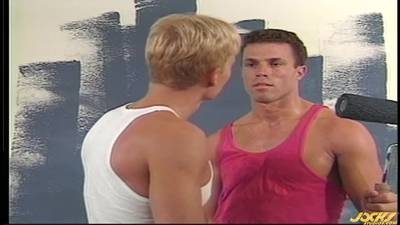 Grosse sauterie tout simplement entre ces deux ouvriers en bâtiments qui lâchent rapidement les rouleaux de peinture pour s'envoyer en l'air