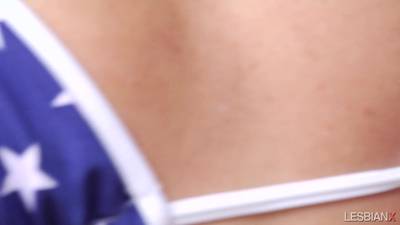 Deux babes actrices américaines, lors d'une baise lesbiennes des plus exquis, dans un canapé rouge dans une sublime maison.