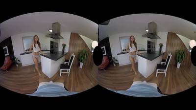 Ornela grimpe sur la queue en cowgirl et baise après avoir sucé en VR