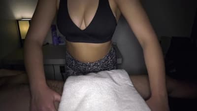 Voici un massage érotique qui doit être des plus excitants ! En tout cas il a une bonne trique et madame va venir s'en occuper