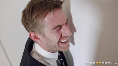 Fellation au gloryhole puis grosse baise avec cette brune qui suce à merveille et qui sera récompensée par une excellente pénétration