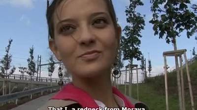 Jolie jeune tchèque suce le mec dans la rue et se fait prendre en POV. Elle accepte la faciale en échange d'argent