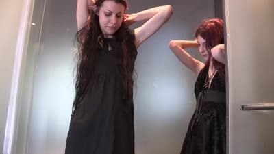 Deux coquines brunes et lesbiennes se douchent ensemble. Caresses, savonnage et rasage sont au rendez vous