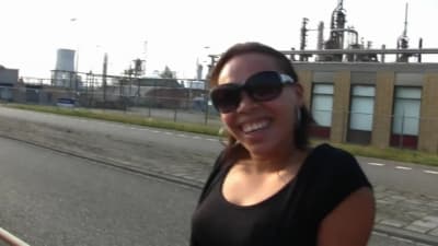 Une antillaise montre la chatte dans une zone industrielle a un mec qui va ensuite la bien baiser dans la chambre jusqu'à ce qu'elle jouie bien fait