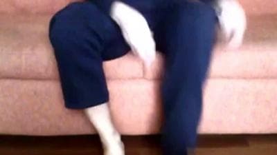 Voici un homme amateur, un vieux gay qui compte s'amuser chez lui en exhibant sa petite bite et en la masturbant