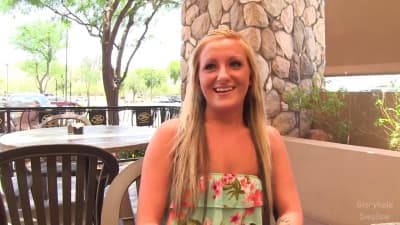 Une jeune blonde prend la bite à travers le trou et dans l'obscurité totale après elle chevauche la bite jusqu'à le faire éjaculer