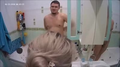 Dans la salle de bain un couple décide de s'envoyer tranquillement en l'air. Elle va lui tailler une pipe gourmande avant d'aller un peu plus loin