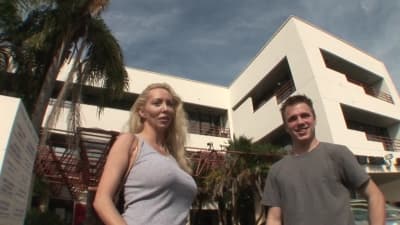 Ce jeune lascar va demander à une mature très bandante aux gros seins de venir à l'arrière de la voiture, ils vont improviser une bonne baise!