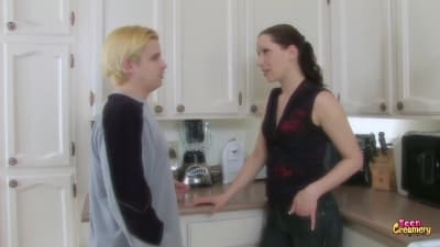 Un blond chelou baise une brune dans sa cuisine