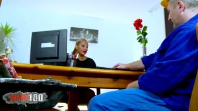 Secrétaire baisse l'ouvrier de chantier sur çà table, elle ce fait démonter le cul, jolie anal par la secrétaire
