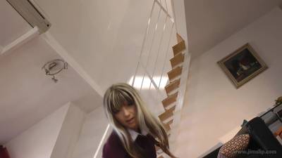 Gina Gerson passe son casting auprès de Jim Slip. Habillée en schoolgirl modèle elle va se caresser la chatte tout en douceur.