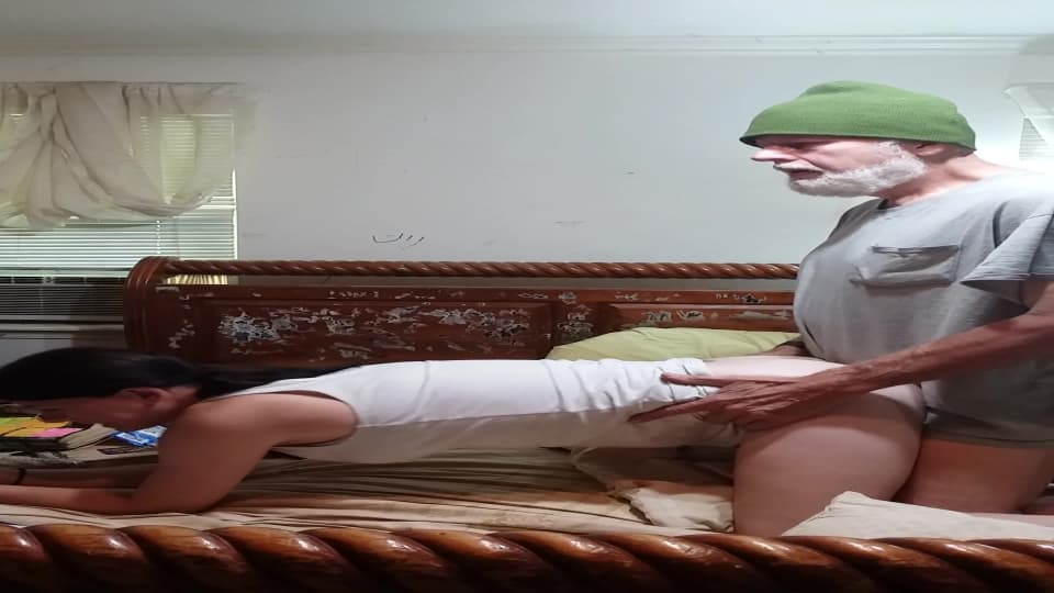 Homme mature au calme sur son plumard qui va se faire pomper le chibre comme jamais par une brunette gourmande