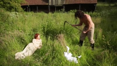 Une femme rousse et un homme vont tout les deux faire l'amour comme au moyen age avec de vieilles tenue