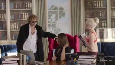 Deux femmes sexy, une femme blonde et une autre brune vont toute les deux se faire prendre par trois hommes
