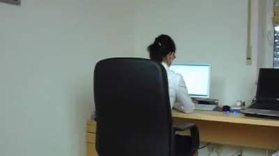 Au bureau, visiblement cette secrétaire a mieux à faire que à travailler ! opération séduction pour le patron qui va la baiser