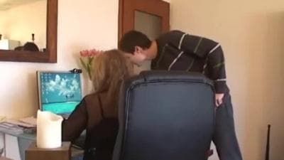 Aujourd'hui monsieur est au bureau et cette salope, une milf qui aime le sexe arrive pour jouer avec sa queue !