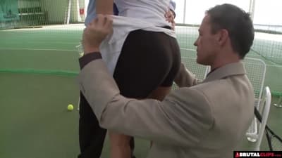 Une jeune mince se fait doublement baiser sur le terrain d'entraînement. Elle prend ces bites très fort jusqu'à ce qu'elles aspergent son corps de sperme.