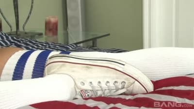 La chaude fausse-blonde s'excite à l'idée que son odeur sente sur le lit de ce mec qui ne résiste pas longtemps pour entrer dans son vagin & son cul !