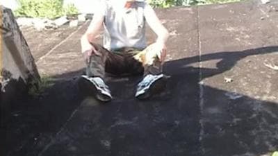 Jeune homme militaire prenant du plaisir tout seul avec un faux vagin qu'il utilise pour une excellente branlette en pleine nature