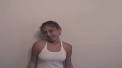 Belle fille aux beaux seins naturels se déshabille et commence à sucer un mec musclé. Il la change de position plusieurs fois et lui donne son jus.