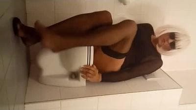 C'est aux toilettes que cette femme mature blonde qui adore toucher sa queue et elle le fait devant sa caméra