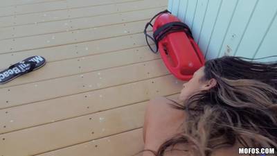 Un sauveteur part à la conquête d'une brune très sexy au gros sein et la ramène sur le pont pour la sauter