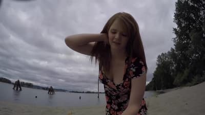 Ils se promènent sur la plage et il va baiser sa copine. Elle est jeune et ses seins sont fermes, dressés et pointus