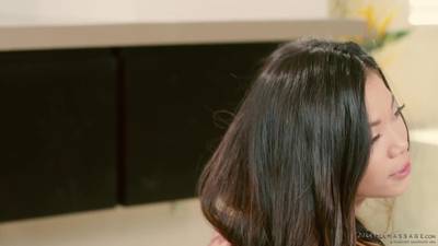 La belle et jeune Vina Sky va sucer le bougre sous la douche avant de lui proposer un massage et de grimper sur sa queue