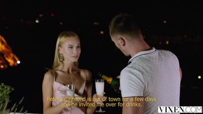 Une Jolie Jeune blonde suce une queue et baise sur une terasse avec la tour eiffel en vue, vraiment beau