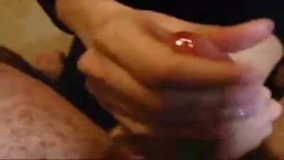 Cette meuf commence à manier cette queue, comme si elle était une pro de gamming. Le mec ne se retient plus et éjacule sur ses mains.