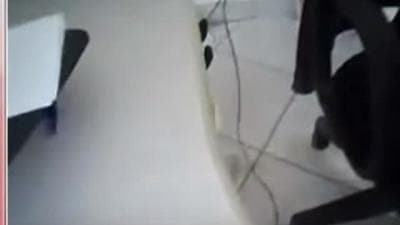 Personne au bureau, alors la latine met ses gros nibards en place et à se masturber, de façon à que son fiancé l'observe de l'autre coté.