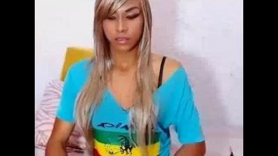Cette jeune petite transsexuelle latine s'amuse avec sa grosse bite en main. Pendant qu'elle se branle, la fille parle avec ses fans.