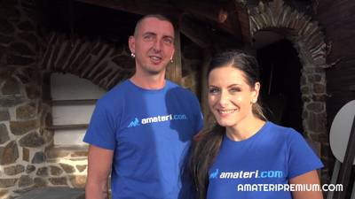 Cette tchèque a une paire de mamelles incroyable ! Le mec les pelote un peu, avant qu'elles se mette à genoux pour lui tailler une bonne pipe