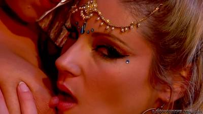 Une brune pulpeuse accompagnée d'une blonde ravissante... Voilà qui promet un film de cul entre filles plutôt intéressant non ?
