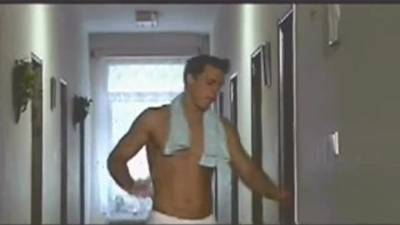 Le mec commence tout seul à se branler et à doigter le cul. Son pote arrive pour se faire sucer et bien sur enculer sous la douche.