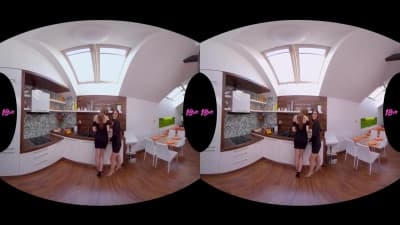 Trio de baise jeune en vidéo porno VR avec deux teens