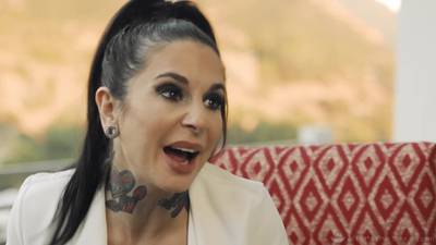 Une brune tatouée fait bien mousser le beau blond avant de l'emmener sur la table de massage pour le baiser.