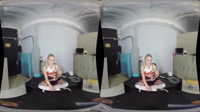 À la fin de la leçon, l'entraîneur trouve une note sur son bureau. Quelqu'un lui demande de se rendre dans les vestiaires. Une blonde l'attend nue.