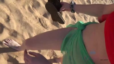 A Hawaï, c'est la détente., Elle va le baiser sur le bord de la plage avant de le branler jusqu'à ce qu'il jouisse