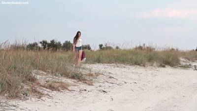 Aujourd'hui on retrouve une très jolie femme qui nous fait le beau cadeau de nous montrer son corps en vidéo sur une plage.
