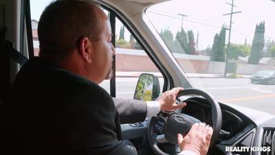 Abella Danger est sacrément chaude avant de partir en vacance, elle va chauffer le lascar dans le mini bus pour bien baiser!