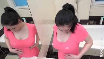 Cette jeune star du porno est magnifique et très sexy avec ses énormes seins naturels ! Regardez-la jouer dans la baignoire en caressant ses tétons roses.