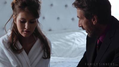 Cette jolie demoiselle aime bien la maturité de cet homme, elle est très sexy en lingerie blanche et va bien orgasmer avec le mec.