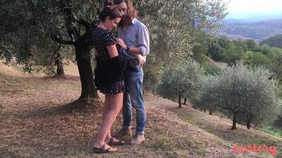 Les deux amoureux vont faire une petite balade et se poser pour niquer au pieds d'un olivier dans un champ d'olivier.