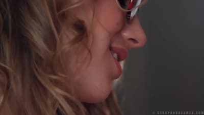 Bernice est une belle blonde qui prend soin de son mec avec une belle pipe, puis elle lui doigte l'anus, pour le préparer à la sodomie avec un strapon.