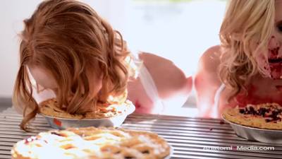 Les trois gonzesses sont un peu cinglées, elles vont faire un concours de manger les tartes sans les mains, une orgie lesbienne va suivre.