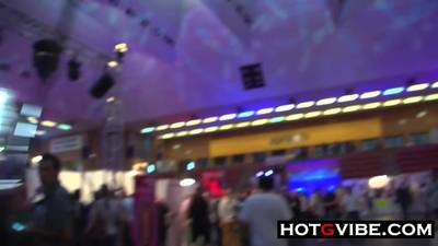 La pute brune a fait un grand spectacle lors de l'exposition et maintenant elle est allée aux toilettes pour avoir un orgasme rapide et revenir.