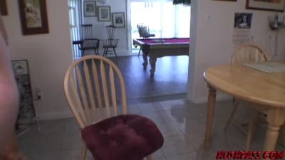 Cette belle milf blonde aux gros seins va se faire bien pénétrer sur la chaise de la cuisine et se faire finir sur la table