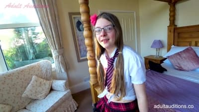 La jeune demoiselle à lunettes va passer un casting, elle est assez timide mais elle va adorer se faire dévergonder sa petite chatte poilue.